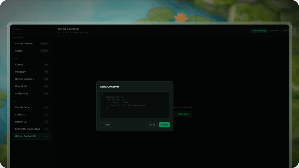 2. Manual Editing is Error-Prone: Editing configuration files by hand can easily cause mistakes. A missing comma, an incorrect path, or a wrong entry can break server connections. Fixing these issues often requires checking multiple files across different clients, which takes time and can introduce new errors.